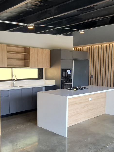 Es una casa de 150 metros cuadrados, con un diseño en construccion híbrida es decir las habitaciones están hechas de módulos y las aréas sociales en estructura metálica.