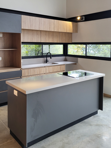 El primer nivel posee piso de concreto pulido material muy durable, práctico, facil de limpiar y muy bonito según nuestro estilo industrial y en el segundo nivel se instaló madera laminada de alto tráfico.